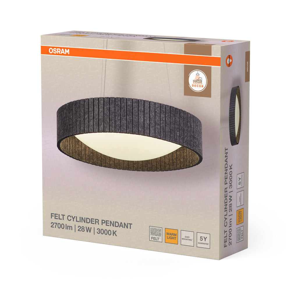 OSRAM DECOR Felt Cylinder Pendelleuchte Dunkelgrau, 28W, 830mm