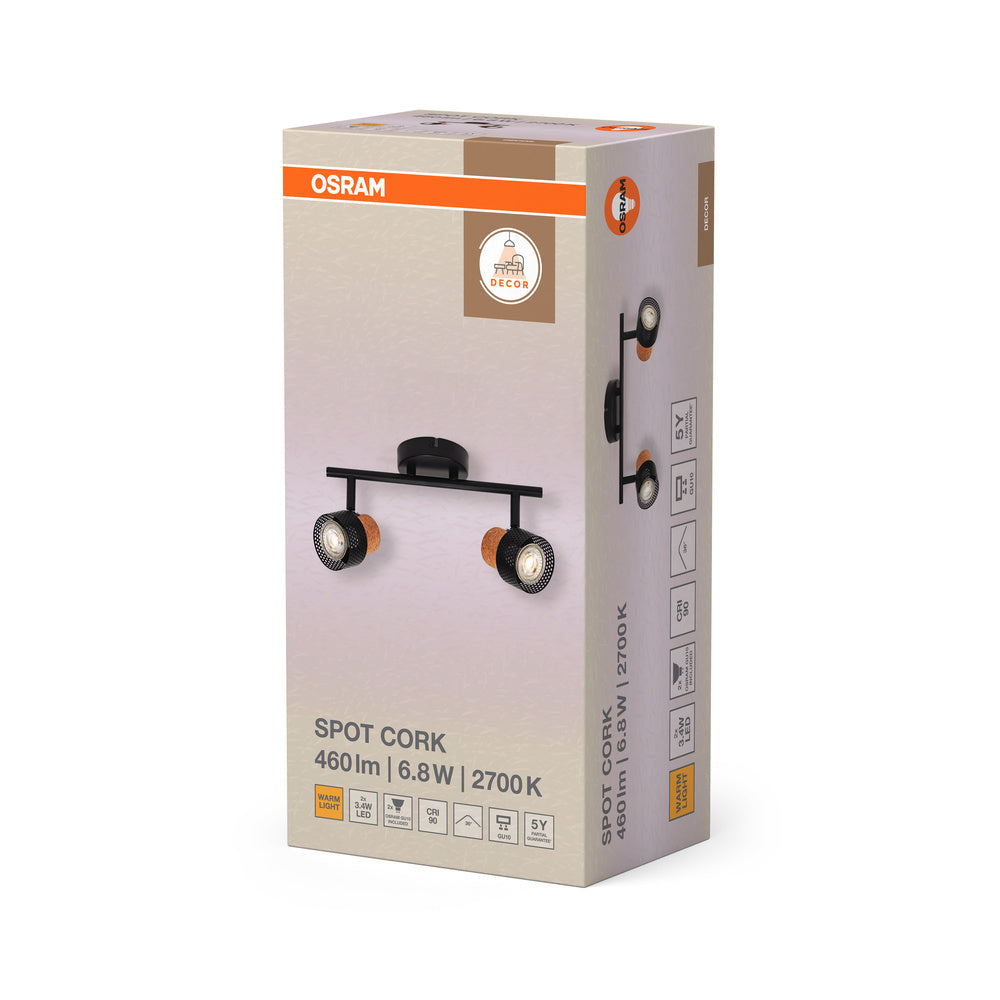 OSRAM DECOR SPOT CORK Deckenleuchte, 2 x 3,4W, 460lm, schwarz
