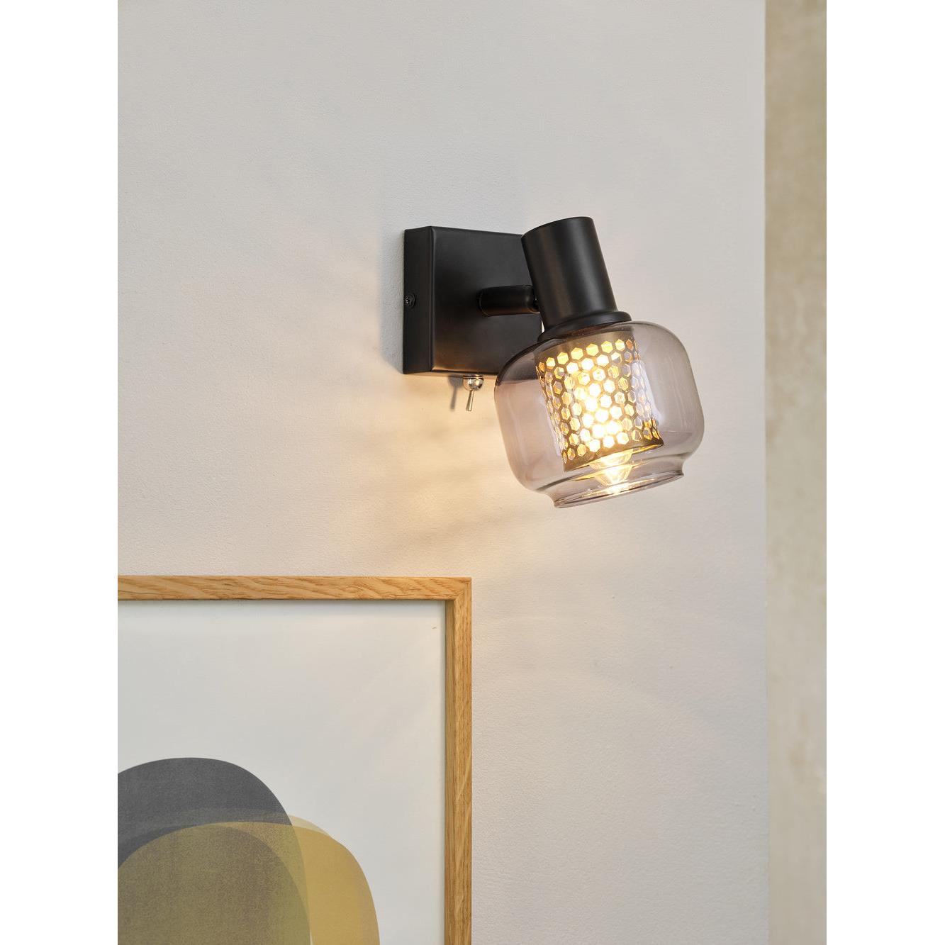 Deckenanbau-Leuchten aus goldenem Wabengitter und rauchigem Glas mit E14 Fassung.