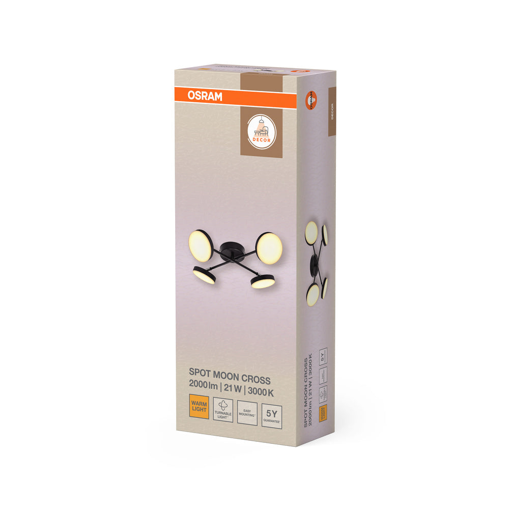OSRAM DECOR Spot Moon Deckenleuchte schwarz, 4 Spots Cross, 21W