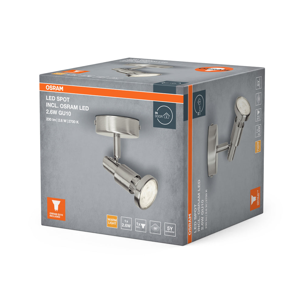 OSRAM LED SPOT BRUSHED SILVER GU10 2.6W , 230 lm, 2700 K, Warmweiß