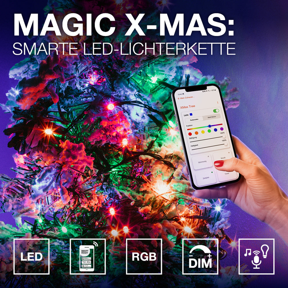 FARBIGE LICHTSHOW - Die MAGIC RGB LEDs ermöglichen beeindruckende Lichtmuster, indem jede LED mehrere Farben gleichzeitig anzeigen kann, ideal für Fest- und Feierdekorationen mit 200 MAGIC LEDs.