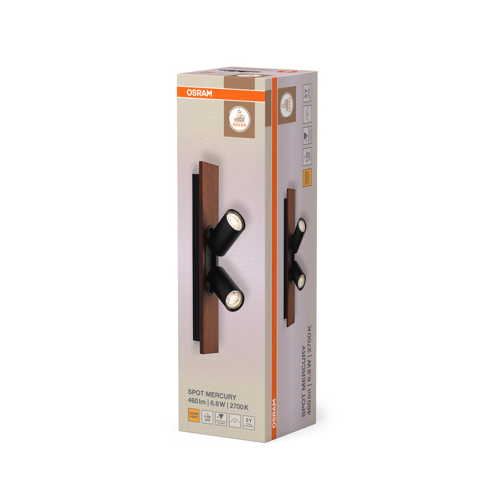 OSRAM DECOR SPOT MERCURY Plafonnier, 2 x 3,4W, aspect bois, noir
