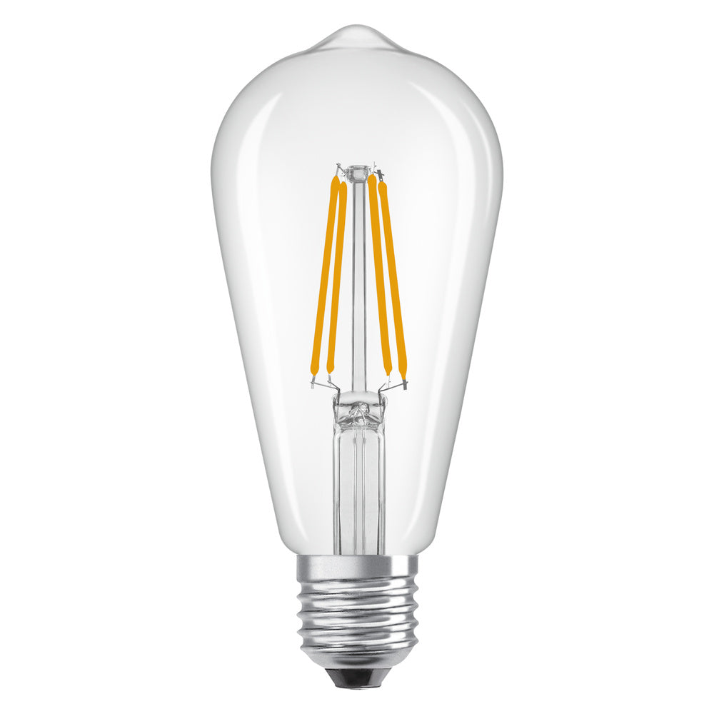 La lampe LED de haute qualité non dimmable LED Star Classic Edison 60 Filament de OSRAM est conçue pour une utilisation polyvalente au quotidien. Avec une température de couleur de 4000 K, elle produit une lumière blanc froid qui crée une ambiance lumineuse et énergisante dans la salle de bain, l'atelier ou le bureau.
