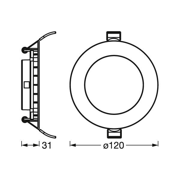 Downlight mince encastrable avec driver intégré. Caractéristiques du produit : Pilote intégré. Matériau du boîtier : plastique. Les plus produit : Forme très fine. Idéal lorsqu'il y a peu d'espace au plafond. Domaines d'application : Applications intérieures. Couloirs, zones d'entrée, cages d'escalier, pièces à vivre, caves. Chambre à coucher. Cuisines. Équipement technique : Accessoires complets de montage et de connexion inclus.