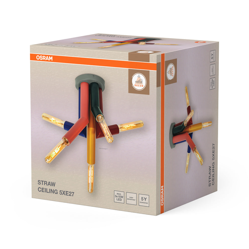 OSRAM DECOR Plafonnier paille, 5 flammes, E27, multicolore
