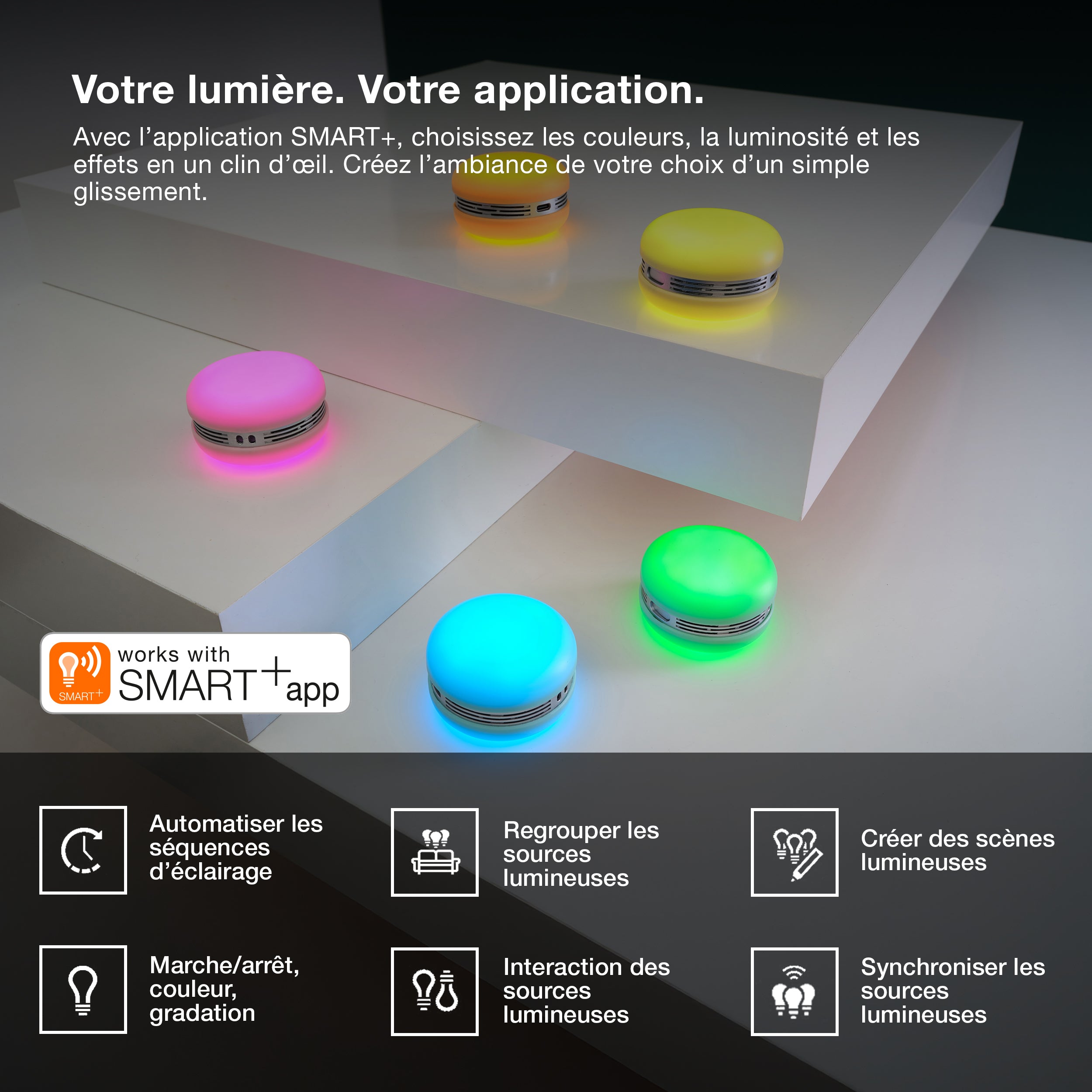 Éclairage RGB – changement de couleur par rotation ou via l'application SMART+