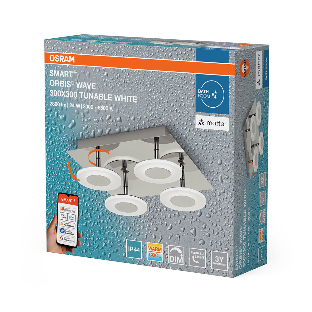 OSRAM Matter SMART+ ORBIS WAVE LED Plafonnier de salle de bain 30x30cm Blanc réglable 26W / 3000-6500K