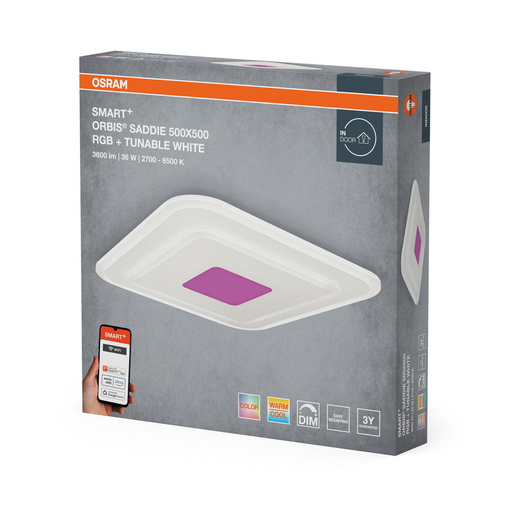 OSRAM Wifi SMART+ ORBIS SADDIE LED RGBW multicolore Plafonnier 50x50cm Blanc réglable 36W / 2700-6500K
