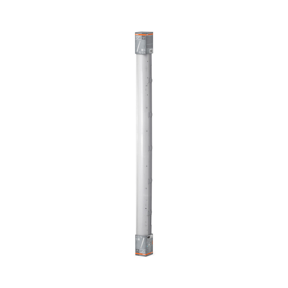 Lampes étanches à la vapeur pour tubes LED. Caractéristiques du produit : luminaire pour pièces humides avec tube LED pour fonctionnement sous tension secteur. Luminaire LED durable et économe en énergie. Protégé contre la poussière et les jets d'eau (IP65). Sans mercure et conforme RoHS. Presse-étoupe M20 pour câbles de 8-12 mm. Non dimmable. Avantages du produit : économies d'énergie jusqu'à 65 % par rapport aux luminaires avec tubes fluorescents T8 sur CCG. Installation facile grâce à l'espace amélioré pour les supports de montage et au couvercle facile à ouvrir. Changement de lampe rapide et simple. Tube LED TUBE Star PC extrêmement incassable inclus. Bonne illumination uniforme. Domaines d'application : caves, garages, entrepôts. Usage intérieur uniquement. Équipement technique : LED TUBE STAR PC EM est fourni avec le produit. 1265 mm x 72,0 mm x 86,0 mm